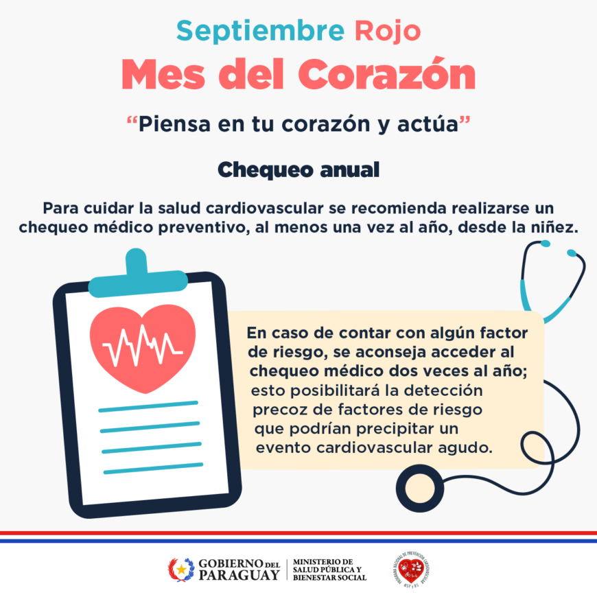 Con el lema: “Piensa en tu corazón y actúa” se hace un llamado a la adopción de hábitos saludables y promover el chequeo médico anual para proteger la salud cardiovascular.