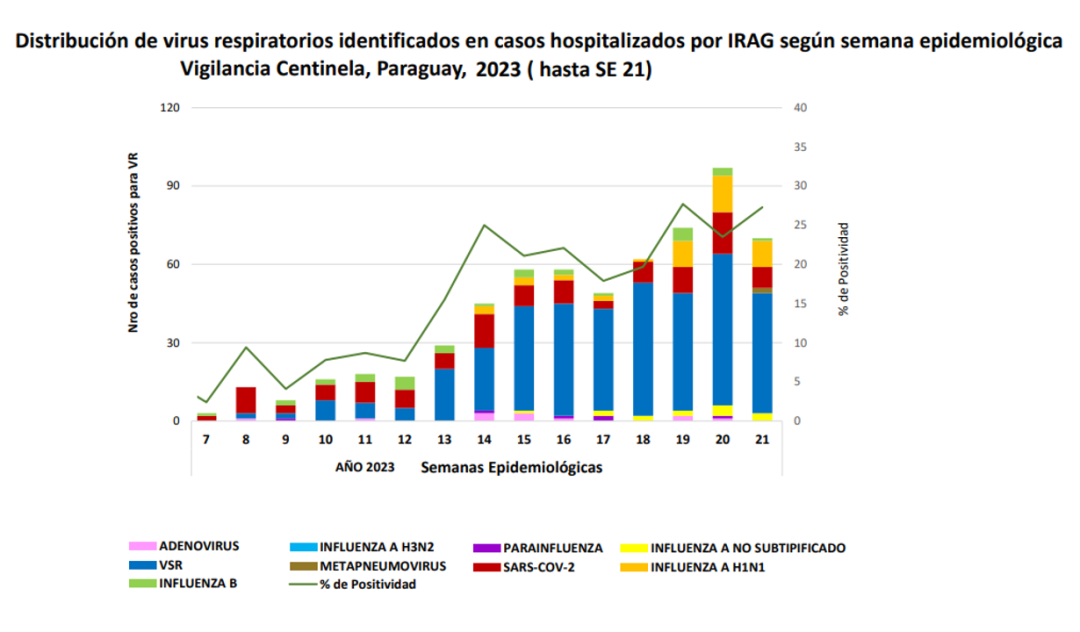 El virus sincitial respiratorio es hasta ahora el predominante, ocupa cerca del 80% de los casos registrados. Es el virus que está causando la mayor carga de consultas y hospitalizaciones, afectando en mayor proporción a niños menores de 2 años.