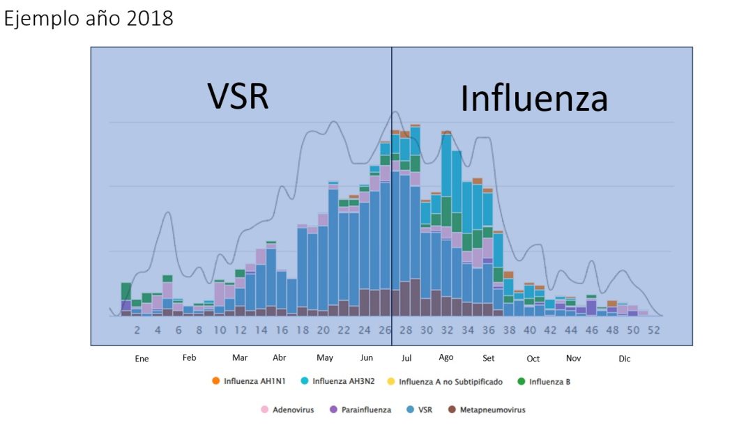- Se experimenta una epidemia similar a la de 2018. En las próximas semanas se prevé que los casos de virus sincitial comiencen a descender e inicie el incremento de influenza.