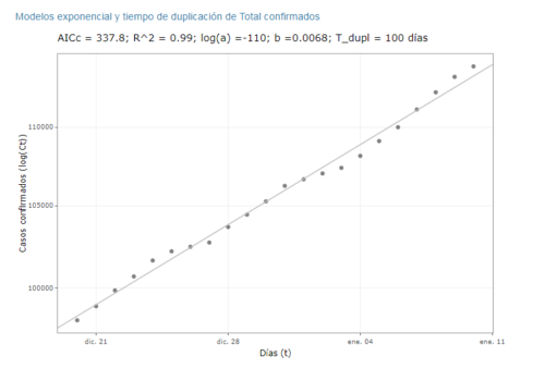 El tiempo de duplicación de casos confirmados es de 100 días, mostrando una tendencia incipiente a acelerarse en relación a la semana anterior. De mantenerse el ritmo actual, en febrero se espera alcanzar un total aproximado de 130.000 casos confirmados.