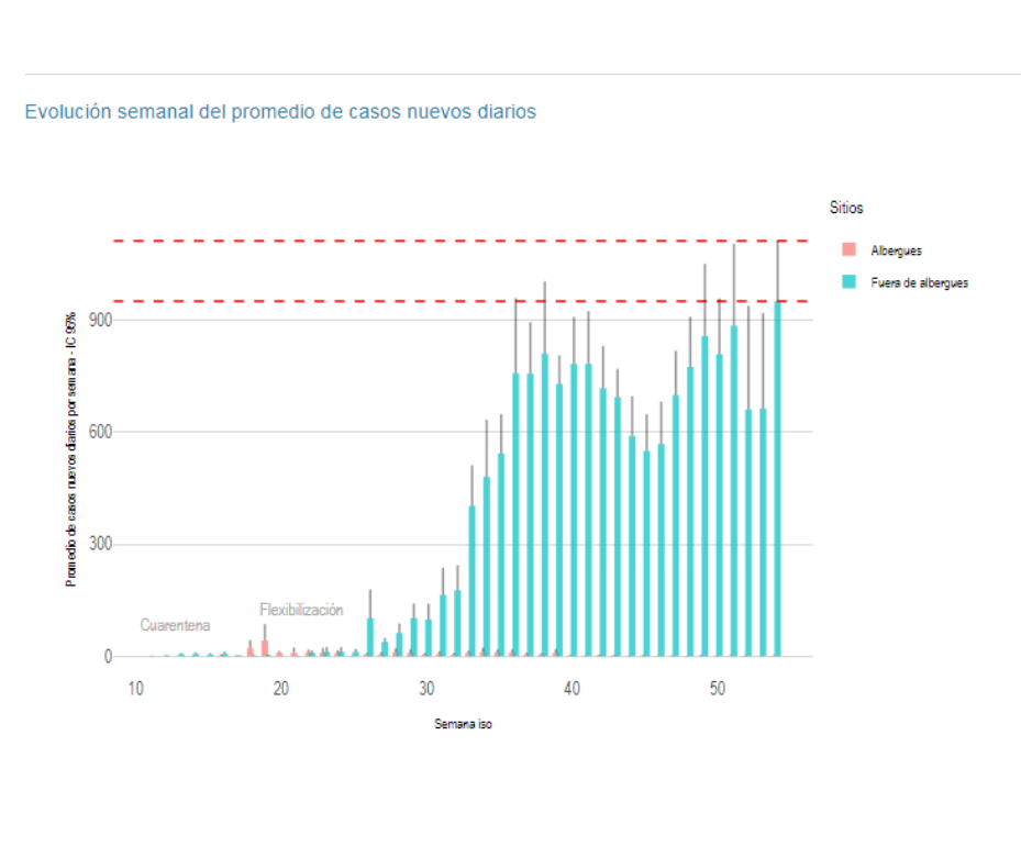 El promedio de casos diarios llega a 1.112. Aunque se observa una tendencia incipiente a la desaceleración de casos en relación a la semana anterior, la cifra de hospitalizaciones e ingresos a terapia es creciente.