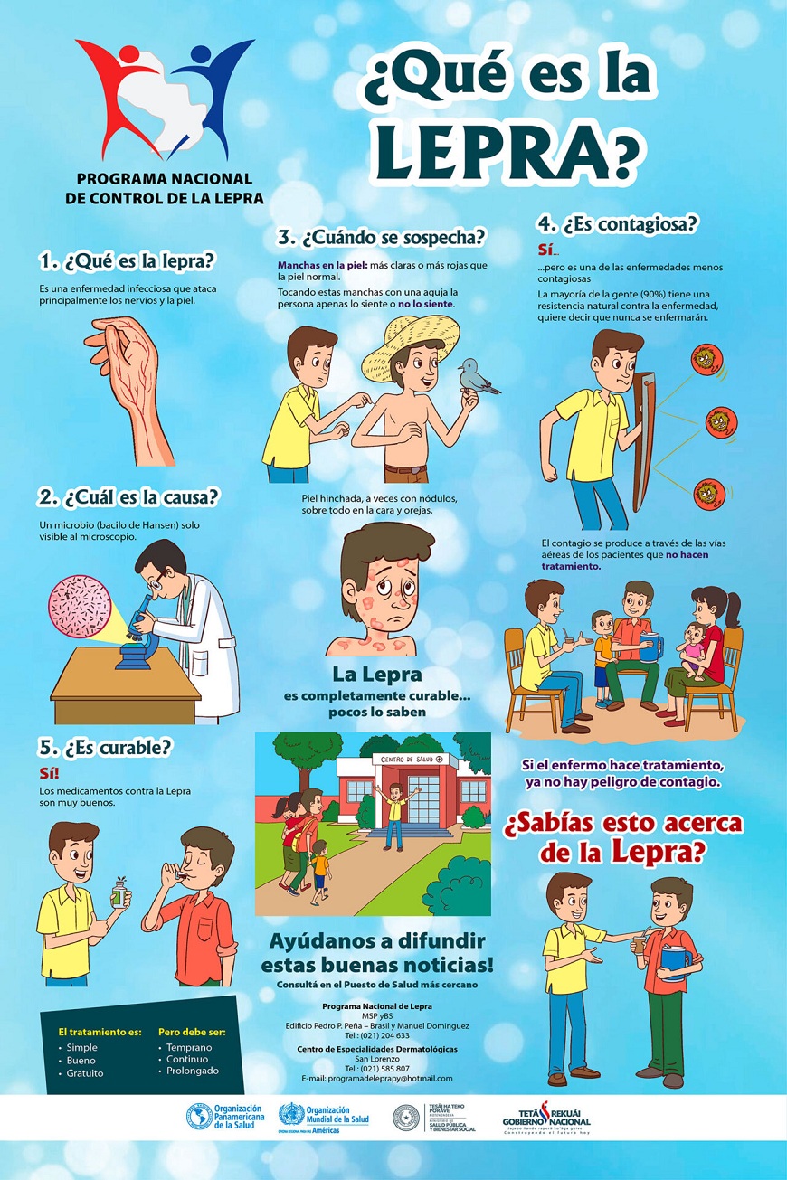 La lepra es una enfermedad infecciosa, contagiosa, crónica, producida por una bacteria denominada Mycobacterium leprae (o bacilo de Hansen) afecta piel, y nervios periféricos de miembros superiores e inferiores. Se Transmite a través de las vías respiratorias, solo un 5% es susceptible de contraer la enfermedad, toda vez que exista un contacto íntimo y prolongado con un paciente de lepra.