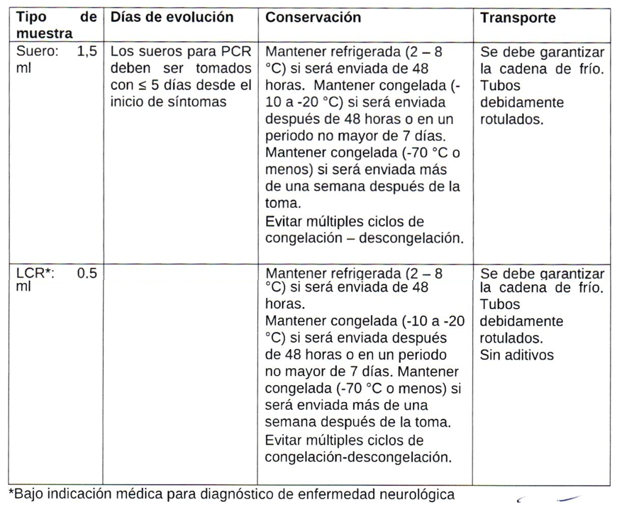 Todo caso sospechoso de OROV que cuente con resultado negativo de laboratorio para RT-PCR en tiempo real, en muestra de hasta 5 días de evolución.