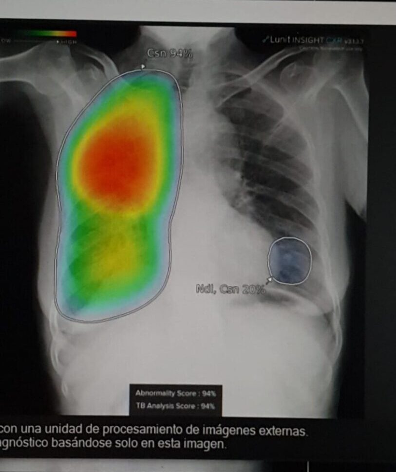El tamizaje es una prueba que analiza los signos y síntomas de la tuberculosis (TB). Así también se llevó a cabo la radiografía de tórax – Rx digital, con apoyo de inteligencia artificial y el estudio bacteriológico.
