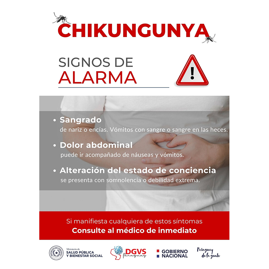 Ante el repunte de casos de arbovirosis, principalmente de chikungunya, se insiste a la ciudadanía, en caso de presentar signos de alarma, acudir a la consulta médica de inmediato para evitar complicaciones.
