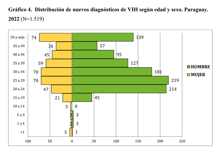 En el 2022 se identificaron 1.519 nuevos diagnósticos del virus de inmunodeficiencia humana (VIH), de los cuales 495 fueron categorizadas como sida, señala el informe sobre la situación epidemiológica del VIH en Paraguay, del Programa Nacional de Control del VIH/Sida/ITS (PRONASIDA).