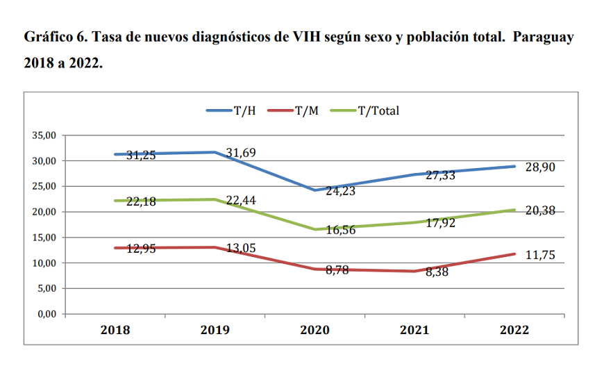 Desde el inicio de la epidemia en Paraguay, en 1985 hasta el 2022 suman 26.569 las personas diagnosticadas con VIH, de las cuales, 9.413 fallecieron. Actualmente, 17.156 son las personas que viven con VIH.