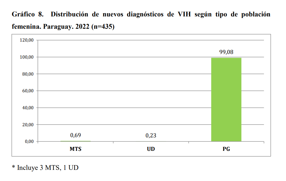 La mayoría de las embarazadas diagnosticadas con el virus de inmunodeficiencia humana en ese año se encontraba entre los 25 y 34 años, el mayor porcentaje eran procedentes de Central, Alto Paraná y Amambay.