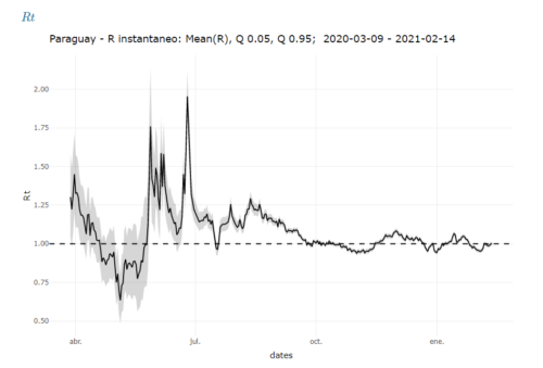 Por otra parte, se observa que el tiempo de duplicación del total de muertes es de 130 días, su evolución evidencia una tendencia de desaceleración desde finales de enero. Si se conserva la velocidad actual, las proyecciones muestran que se podría llegar a 3290 óbitos reportados en la primera semana de marzo. El promedio diario de muertes por millón de habitantes es a la fecha de 2,18 casos y no es significativamente distinta a las últimas siete semanas previas. En cuanto a la mortalidad en el país, se han reportado un total aproximado de 40 muertes por 100.000 habitantes, siendo una de las más bajas de la región.