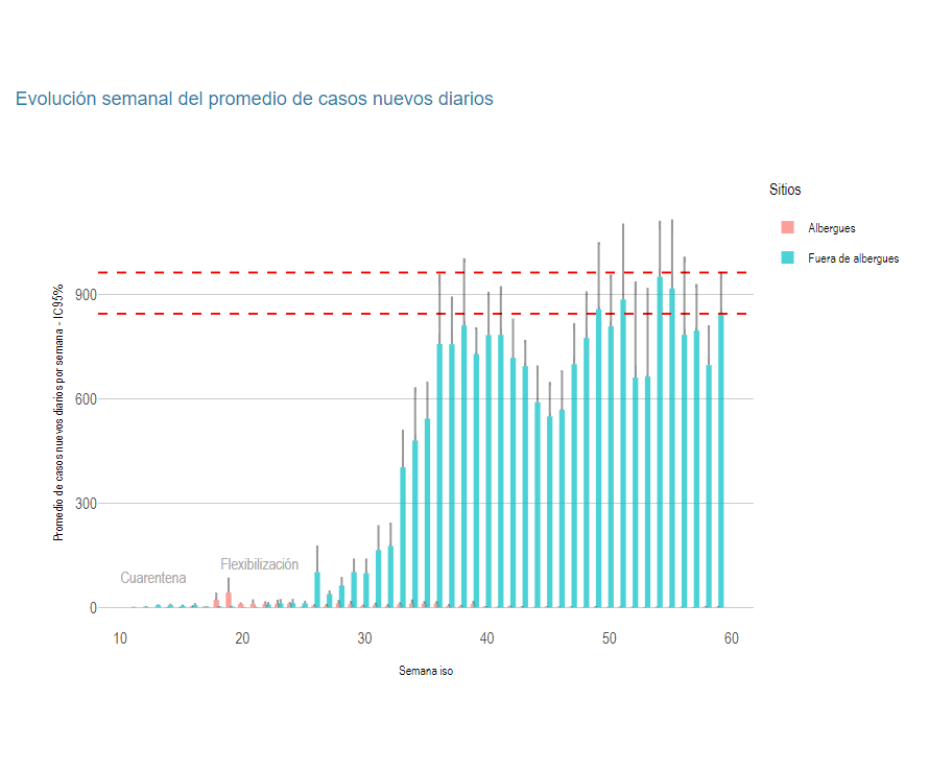• El promedio de nuevos casos diarios es de 845, muy superior con relación a la semana anterior.