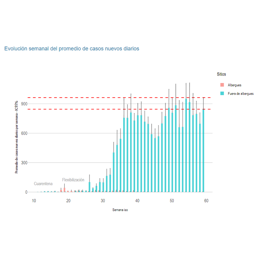 - El promedio de nuevos casos diarios es de 845, muy superior con relación a la semana anterior.