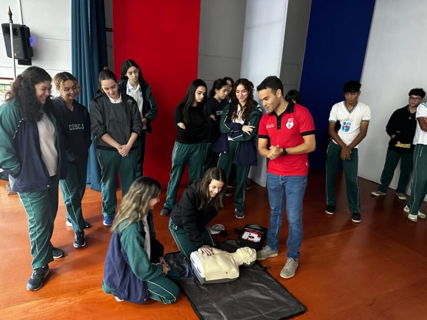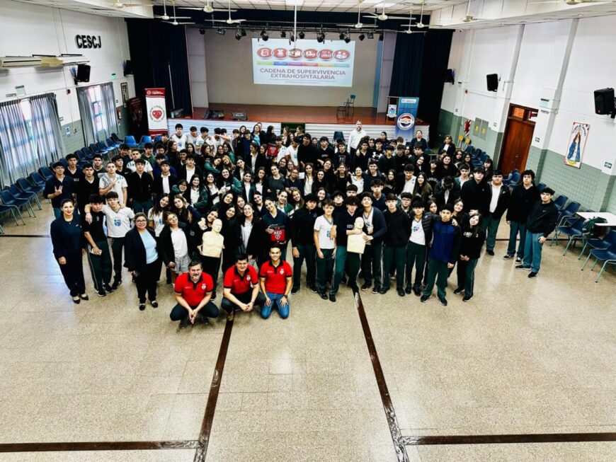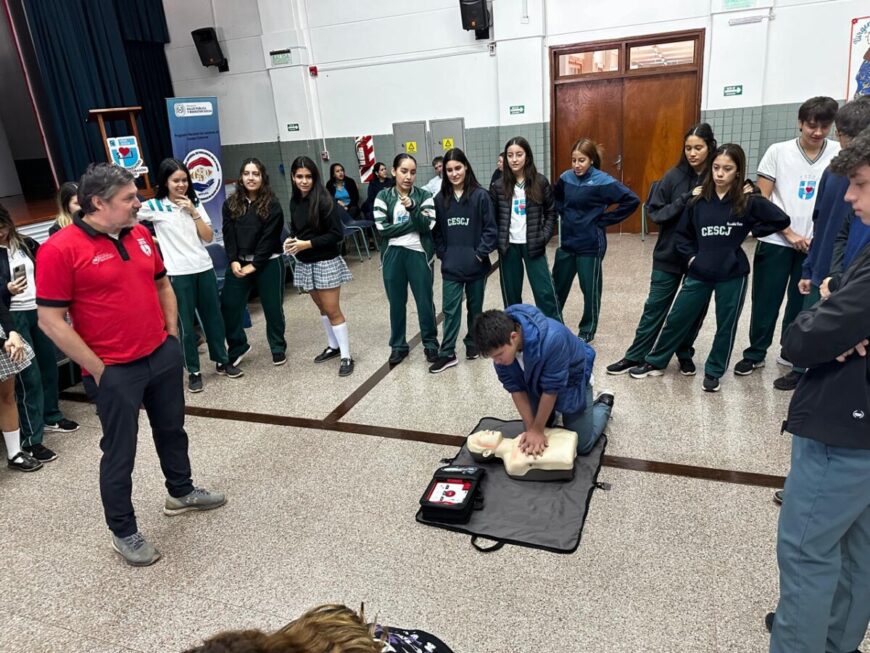 Unos 114 estudiantes de educación media del Centro educativo Sagrado Corazón fueron capacitados en maniobras de RCP y uso de desfibrilador, estrategia que permitirá la prevención de paro cardíaco y muerte súbita de origen cardíaco.