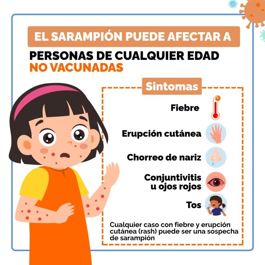 El sarampión es una enfermedad viral altamente contagiosa. Puede ser grave y mortal. Se transmite por microgotas que se expulsan al hablar, toser y estornudar. Estas gotitas pueden quedar suspendidas en el aire hasta dos horas.