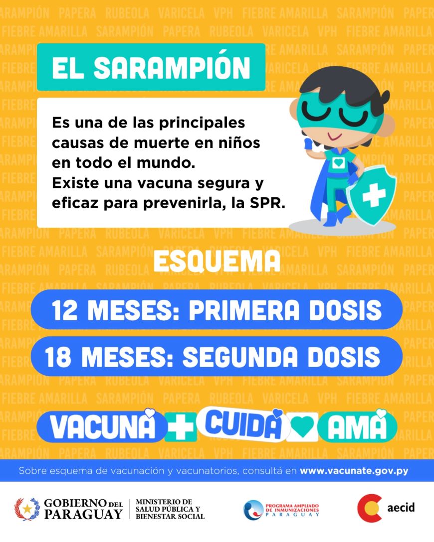 De acuerdo al reporte semanal de Vigilancia de la Salud, la cifra de afectados por el virus del sarampión en Paraguay asciende a 44 casos actualmente, de los cuales, 6 corresponden a casos de sarampión identificados en la última semana: cinco de ellos en zona de foco, departamento de San Pedro, y uno en el departamento Central, en el distrito de Fernando de la Mora, sin antecedente de vacunación.