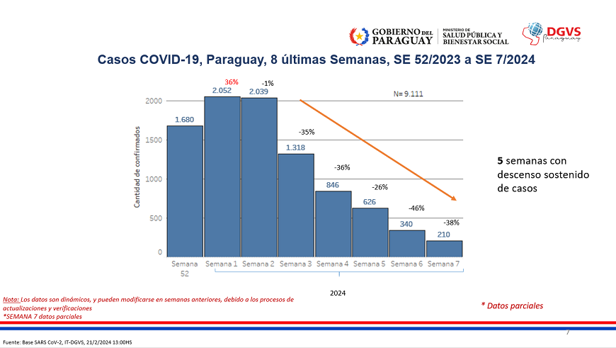 Datos parciales muestran que en las últimas tres semanas (SE) 5, 6 y 7 se diagnosticaron un total de 1.176 casos positivos de COVID-19. El 63% de los casos corresponde al grupo de 20 a 39 años.