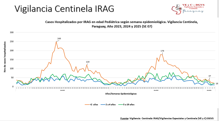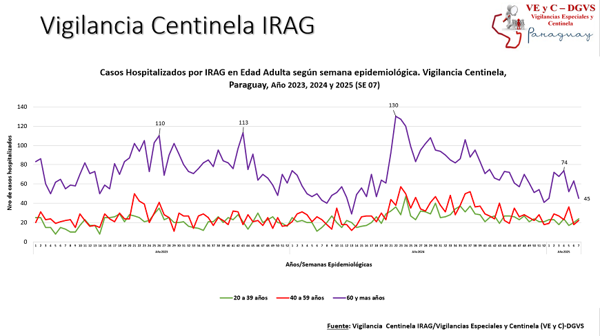 Hasta la (SE) 07 se contabilizaron 1.229 hospitalizados por infecciones respiratorias agudas graves (IRAG), de los cuales, 137 corresponde a los hospitalizados de la última semana; el mayor porcentaje de internados se ubica en la franja adulta.