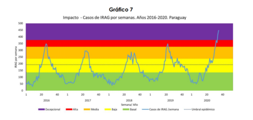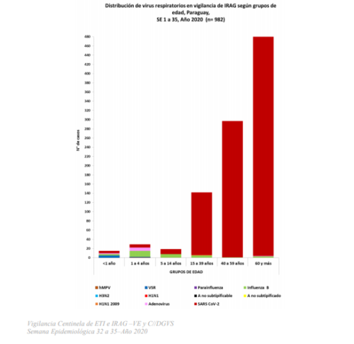 Con respecto a las infecciones respiratorias agudas graves (IRAG), datos reportados en los centros centinelas señalan que, en el transcurso del 2020, unos 5.975 pacientes con diagnóstico de la enfermedad requirieron hospitalización, siendo los más afectados los mayores de 60 años, registrando una baja afectación en niños menores de 5 años, comparado con años anteriores para la misma época.