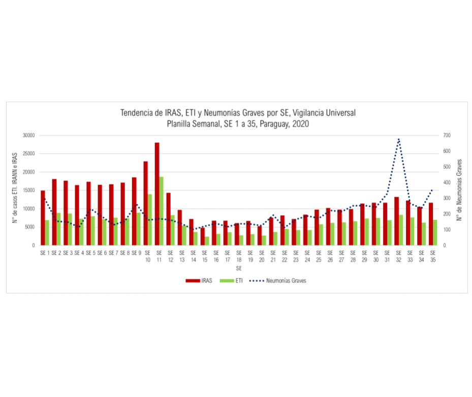 Durante la vigilancia rutinaria de Influenza y otros virus respiratorios para detectar la posible circulación comunitaria en el país, (desde la semana epidemiológica SE 9 y hasta la 35) se analizaron 5.506 muestras de infecciones respiratorias agudas graves provenientes del Sistema de Vigilancia Epidemiológica de Influenza, de cuales 931 dieron positivo a SARS-CoV-2.