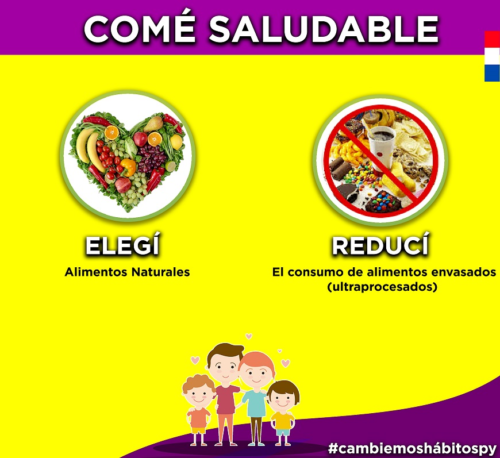 Aumentar el consumo de alimentos naturales y mínimamente procesados y reducir el consumo de alimentos ultraprocesados que tienen alto contenido de grasas, azúcar y sal, como los embutidos, snacks, gaseosas, entre otros, ya que su consumo en exceso favorece el desarrollo de sobrepeso, obesidad y otras enfermedades asociadas.