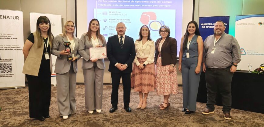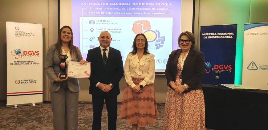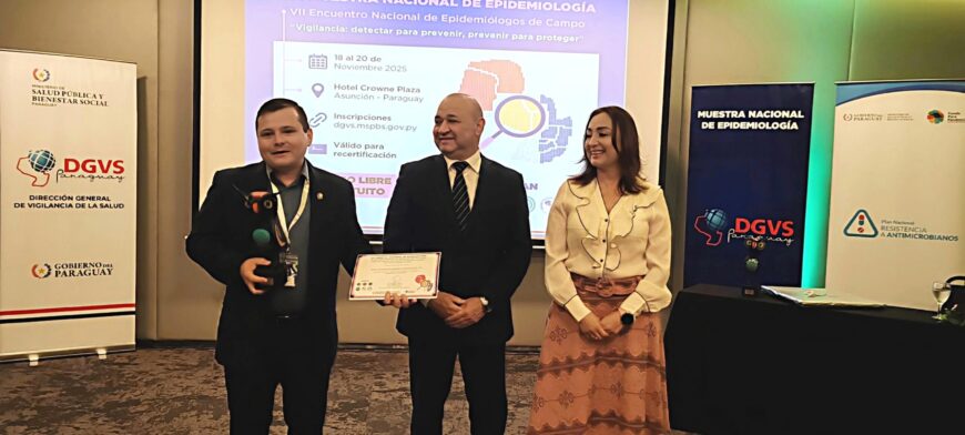 En la oportunidad, se procedió a la ceremonia de entrega de los premios Búho de la Epidemiología 2025, estatuilla que simboliza al vigilante, mediante el cual se rindió reconocimiento a profesionales e instituciones, por la destacada labor en el ámbito de la salud. Los premiados con el Búho fueron: el equipo del Programa Ampliado de Inmunizaciones, por la Trayectoria Nacional; la Unidad Epidemiológica Regional de Guairá recibió el premio al Nivel Regional; por su parte, el Departamento de Epidemiología y Sistema de Información del Instituto de Previsión Social – IPS Central fue reconocido por su Trayectoria en el Nivel Local; y por la trayectoria profesional fue galardonada la Lic. Vilma Teresa Pérez.