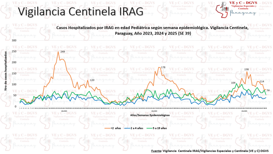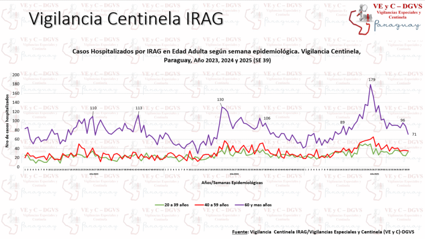 Por otra parte, se observa una disminución de ingresos hospitalarios. En la semana epidemiológica (SE) 39 se reportaron 310 hospitalizados por infecciones respiratorias agudas graves (IRAG) en los centros centinela, evidenciando una disminución del 7%. El 15% de los hospitalizados ingresó a la unidad de cuidados intensivos.