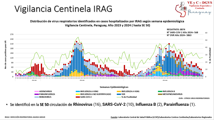 La semana (SE) 50 cerró con la confirmación de 167 casos de la infección. Los casos confirmados proceden de 14 regiones del país. La mayor proporción de contagios, el 71% se reporta el área Metropolitana: en Asunción y Central.