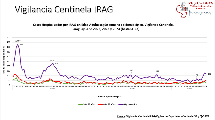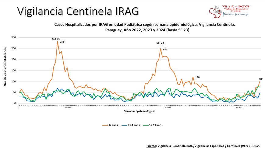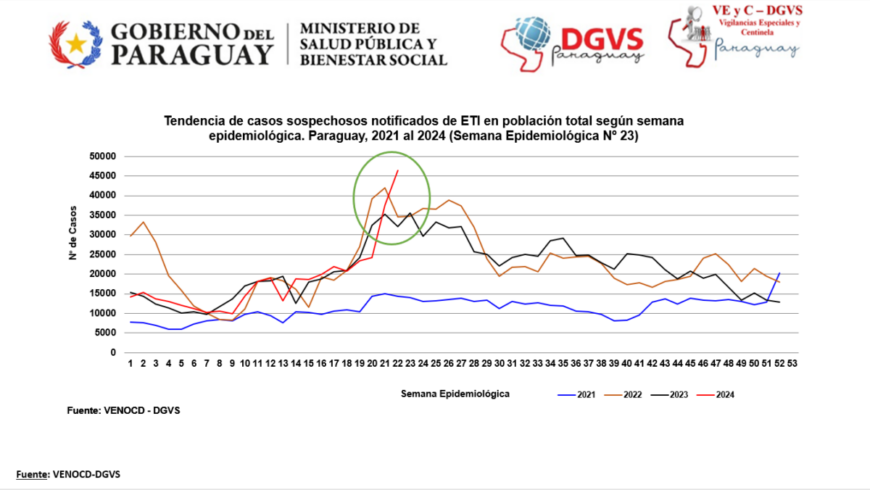 El reporte de la Vigilancia Universal muestra que en la última semana (SE) 23 se registraron 53.099 consultas por gripe, evidenciando una alta demanda con un incremento de 14% con relación a la semana anterior.