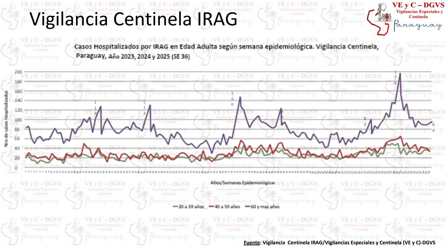 El reporte semanal muestra que en esta semana (SE) 36 se contabilizaron 354 hospitalizados por infecciones respiratorias agudas graves (IRAG) en los centros centinela, verificando un descenso del 10%. El 20% de los hospitalizados ingresó a la unidad de cuidados intensivos.